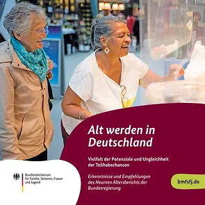 Um die Rahmenbedingungen älterer Menschen für ein selbstbestimmtes und aktives Leben im Alter zu verbessern, stellt der Neunte Altersbericht die Vielfalt und Unterschiedlichkeit der Lebenssituationen älterer Menschen in Deutschland dar und untersucht, ob die Möglichkeiten zur gesellschaftlichen Teilhabe für alle in gleichem Maße gegeben sind. Darüber hinaus gibt er Anregungen dazu, wie die Teilhabechancen älterer Menschen gesichert und gestärkt werden können. Der Bericht besteht aus zwei Teilen, dem Sachverständigenbericht und der Stellungnahme der Bundesregierung.
