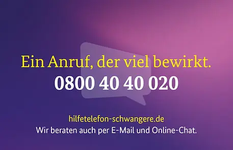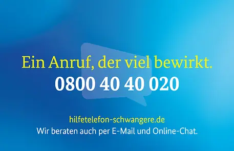 "Ein Anruf, der viel bewirkt" - unter diesem Motto ist am 31. August 2022 eine Öffentlichkeitskampagne gestartet, die zum Ziel hat, Hilfsangebote für Schwangere bekannter zu machen. Schwangere in Not und Menschen aus deren Umfeld sollen ermutigt werden, sich bei Fragen und Sorgen rund um die Schwangerschaft beim Hilfetelefon zu melden, um hier Unterstützung und Hilfe zu finden. Informationen und anonyme Beratung gibt es telefonisch unter der Nummer 0800 40 40 020 oder auch online.